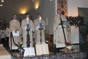 Die Pfarrei Corpus Christi sei ein neuer Schritt im Zusammenwachsen. Als Prälat Dornseifer die Messe eröffnete verlas er zu Beginn die Urkunde über die Errichtung der Kath. Pfarrei Corpus Christi, Castrop-Rauxel und beglückwünschte Pfarrer Szarata mit einer herzlichen Umarmung, denn er ist der erste Pfarrer der neuen Pfarrei. Als Zeichen der Verbundenheit wurden vier Kerzen entzündet, die von nun an in jeder unserer vier Kirchen einen Platz finden und zu Gottesdiensten brennen werden. Sie machen uns bewusst, dass für uns eine neue spannede Zeit beginnt, die wir gemeinsam als Pfarrei leben und gestalten dürfen. |