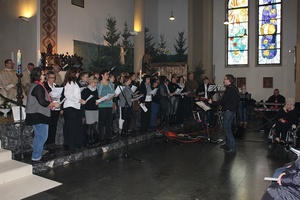 Passend dazu hatte die Musikgruppe jede Menge Mut-machende Lieder vorbereitet. Besonders in Erinnerung blieb aber das Lied zum Friedensgruß, das folgende Zeilen beinhaltete: "Unterwegs in eine neue Welt, in der Glaube uns zusammenhält. Im Laufe des 2 Stunden dauernden Gottesdienstes wurden viele schöne und fröhliche Lieder gesungen. Auch -das schon Kultlied unserer Pfarrei - "Ein Haus voll Glorie schauet" durfte natürlich nicht fehlen. Es begleitet uns in besonderer Weise schon seit der Gründung des Pastoralverbundes im Jahr 2003. |