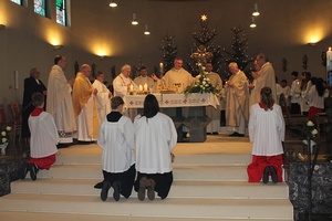Die Errichtung unserer Pfarrei nahm der stellvertretende Generalvikar des Erzbistums Paderborn, Domkapitular Prälat Thomas Dornseifer vor. Er stand dem Festgottesdienst in unserer Pfarrkirche St. Josef als Hauptzelebrant vor. Mit ihm standen neben den Mitgliedern unseres Pastoralteams noch Monsignore Dr. Lothar Schlegel aus dem PV-Süd, sowie Pfarrer Dittmer von der Evangelischen Kirchengemeinde Ickern-Henrichenburg am Altar. Außerdem waren ebensfalls noch Pater Hubert Nophut OFM und Pfarrer i. R. Norbert Kassner mit dabei. Die Liturgie wurde zusätzlich von der Projektmusikgruppe unserer Pfarrei unter der Leitung von Jan Primke, den Kirchenchören aus St. Antonius und Herz Jesu, sowie Wolfgang Friebe an der Orgel gestaltet. |