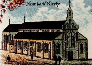 Die neue Herz-Jesu-Kirche nach der endgültigen Fertigstellung des Kirchturmes.