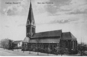 Die erste Ansicht der Herz-Jesu-Kirche in Rauxel; hier wurde am 24. November 1900 die erste heilige Messe gefeiert.