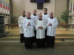 Sechs Männer aus der Gemeinde haben gemeinsam geübt und dienen seither etwa dreimal pro Monat eine Messe am Wochenende und, wenn möglich, auch die beiden Werktagsgottesdienste im Monat. Damit entlasten sie unsere reguläre Messdienergruppe.