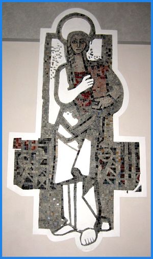 Mosaik der Hl. Barbara über dem Taufstein in der Barbara-Kirche